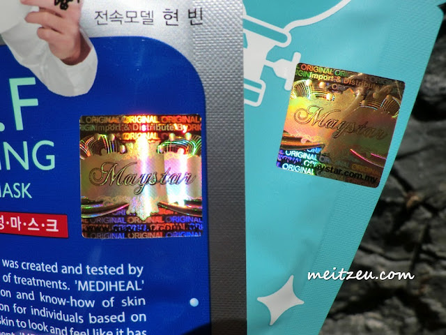 当我们在购买Mediheal 面膜, 别忘了检查是否面膜包装上有Maystar 贴纸, 如果有, 这代表面膜是正版进口产品。