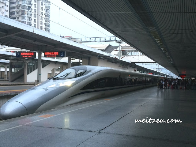 GuiLin trip ended and off we go to the next destination with China's bullet train! First class! Not to show off, but first class not very expensive even, spacious seats that we are comfortable with.